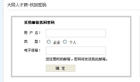請輸入 用戶名 和當(dāng)初注冊的郵箱.特別注意,選擇好,企業(yè)和個(gè)人,企業(yè)就是招聘單位,個(gè)人就是求職者 填寫完畢 點(diǎn)確定 就可以了,如果這個(gè)方法不好用 可以用下一個(gè),.